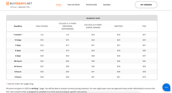 Buyessays.net offers reasonable and fair prices. Whatever order is placed, its price depends on 4 key parameters: