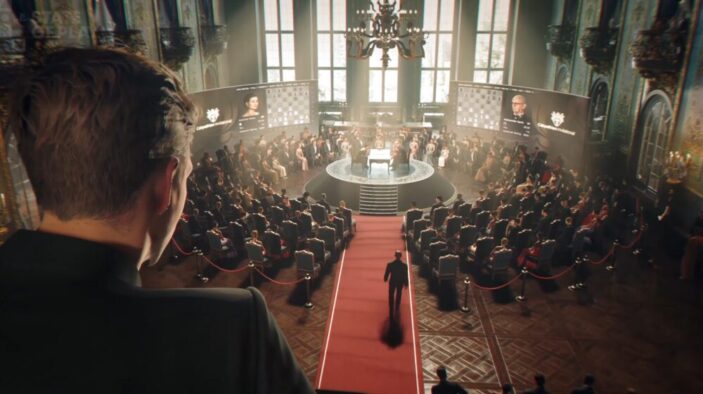 As Bond is not specifically invited to this event, the main door is off-limits as the unit requires a press pass to get in. Bond can survey the landscape for options, and the game actually tells you how to go about things, and if you’re being watched. Sure, you can jump on that ledge, just not in public.