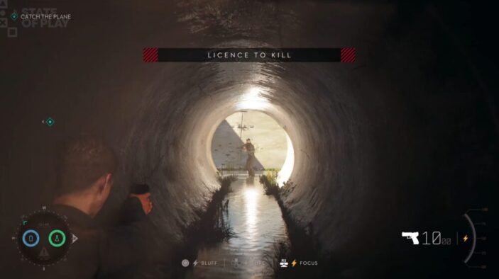 Getting caught by a camera of enemy camera doesn’t even cause you to fail a mission. Bond also has access to a Focus meter. in which he can bluff his way through tense encounters. Bluffing won’t always work depending on the situation, but Bond can also regain Focus by taking out enemies and defusing situations without causing any extra suspicion. But even before things go sour, guards will simply question you and even approach you, for you to get the drop and take them out.