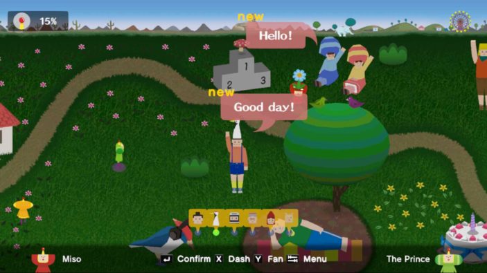You’ll start off in a side-scrolling meadow where random people call out at you, asking for katamari-related help. Some requests are simple enough, such as ‘cleaning a room’ and the level design will mirror it by placing you inside a bedroom with far more than just a few messy socks. The goals are dictated by the King and vary from achieving a certain diametric size within a set time frame or collecting enough of a specific type of item, such as flowers. Compared to the original game, expect sharper graphics and more vibrant colours, fitting the game’s zany aesthetic. The menu is a little more user-friendly when it comes to level selection and you can now even curate your own music playlist to jam along to as you roll your katamari around.