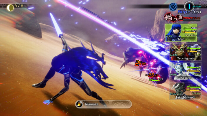Like many JRPGs, Shin Megami Tensei V: Vengeance takes its time in building its systems and introducing you to its mechanics, so it rarely feels difficult in the opening hours. Each character in your party begins with four icons on the top right of the screen, which indicates how many actions they can undertake in one turn. Targeting a weakness or attacking with critical hits can even make these icons glow instead of taking them away, essentially giving you extra actions within your turn.