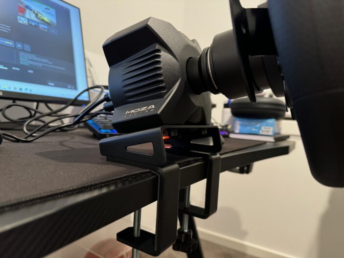 Setup can take a little to get going, and while the instructions unfortunately aren’t that clear. That being said, you’ll simply need to screw the wheelbase onto the desk mount and then attach the wheel to the base itself.