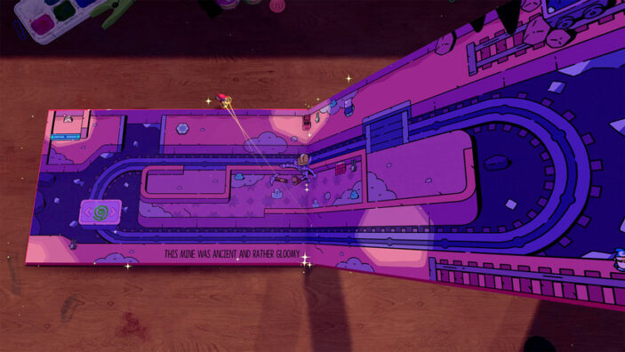 The puzzle design is also simple yet inventive. Jot can physically manipulate words on the pages of his story world to reshape the environment, for instance, swapping “forest” for “ruins” to clear a path or replacing “closed” with “open” to unlock doors. This mechanic, though straightforward, invites experimentation and keeps your eyes peeled for word combinations that lead to some more amusing outcomes.