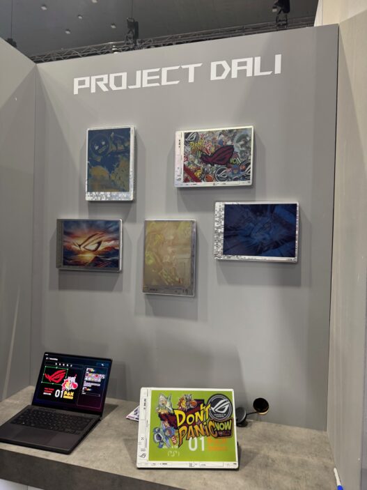 Located over at the ROG booth, the Republic of Gamers have brought their testing device for Project Dali. An immersive laptop screen that lets you create and express art on a screen on the outside of your laptop. It is done with e-ink and there are some preloaded images you can play around with. You can also create your designs and watch them flash onto the outside of the laptop screen. It is spectacular to see and will be great to watch this as it progresses.