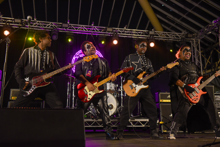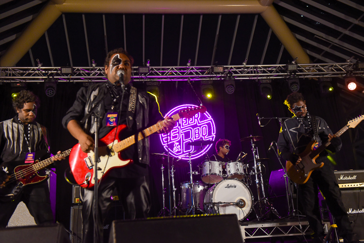 On top of this, the three music stages kept the vibe going all evening. Indigenous act Mulga Bore Hard Rock took to the Kevin Bacon stage early in proceedings. If you’ve never seen these guys live, you don’t know what you’re missing. They dress in Kiss attire and have even played gigs with them. Their hard rock songs just get better with every listening.