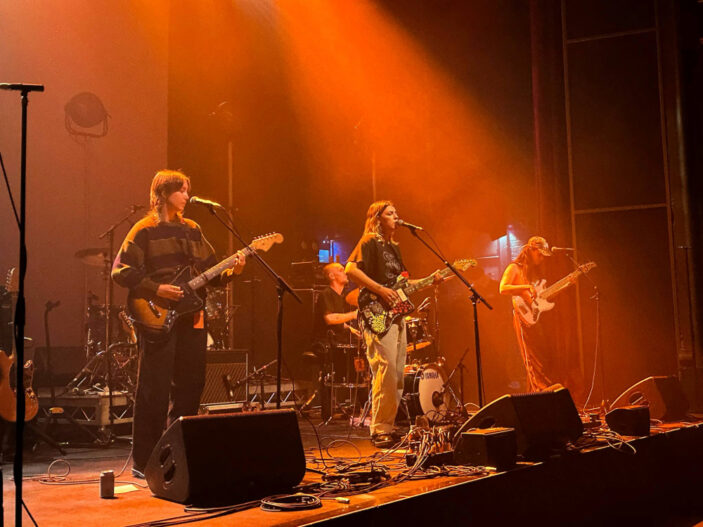 As punters swarmed to the barrier, they were greeted by Brisbane’s own Platonic Sex, who opened the evening with a fuzz-soaked alt-rock set. Comprised of Bridget Brandolini (guitar, vocals), Jane Millroy (guitar), Ryan Hammermeister (drums), and Mikki Hain (bass), the four-piece delivered an electrifying contrast to the headliners. Their sound was loud and punchy but never noisy, landing at the intersection of gritty, runaway distortion and catchy melodic flourishes. Each member had their moment, while Brandolini’s nuanced vocals and socially conscious song writing held everything together.