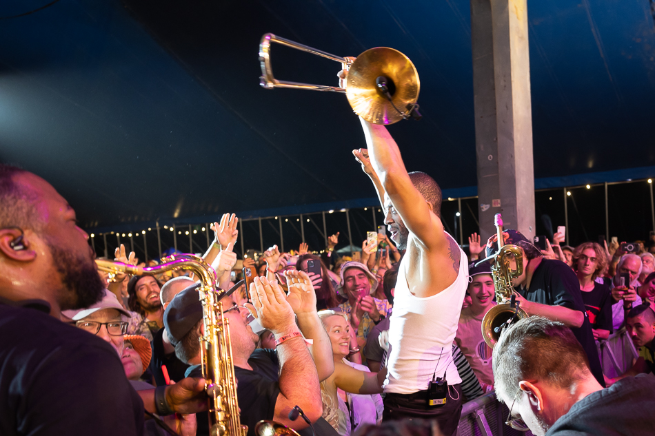 Speaking of high-energy, Trombone Shorty and Orleans Avenue brought it in spades. The band was outstanding, each of them partying as though there was no tomorrow. If your feet were tired up to that point, that was quickly forgotten in the whirlwhind they whipped up.