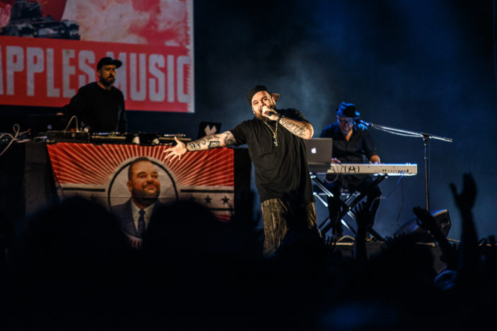 WOMADelaide is not only a gathering of international artists but also a celebration of Australia’s best and brightest. One of the biggest Aussie acts included Briggs, who played his only set at 10:45pm on Sunday night accompanied by a full band which included Lindsay McDougall of Frenzal Rhomb and DJ Jayteehazard, plus guest performances from rapper Savage and singer Ngaiire. Briggs is a great frontman whose humour and charisma seems effortless. He had the crowd singing along to “Rather Be Dead” and playfully “tested” the DJ with a call and answer that led into a performance of “Sheplife.”