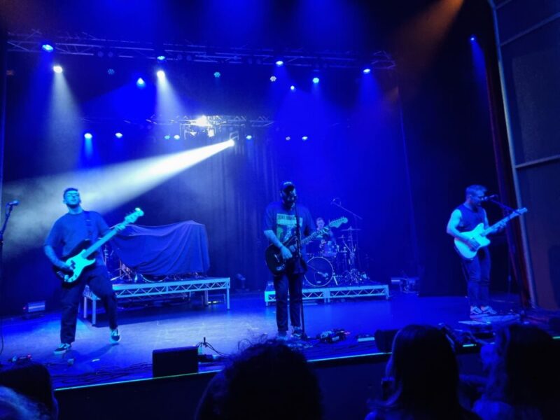 Local four-piece Nervous Light opened the night with their own brand of self-professed post-hardcore, emerging to a vocal sample about emo music, replete with skinny jeans and Vans. They soon hit their stride with a loyal few and if punters were curious after sad singalong “Coffee Stains & Picture Frames”, then they were sold by the time heavy groover “bitemytongue” activated the pit. Harsh screams and sweet cleans blended over nostalgic punk riffs and contemporary programming to deliver a satisfying mix of old and new.