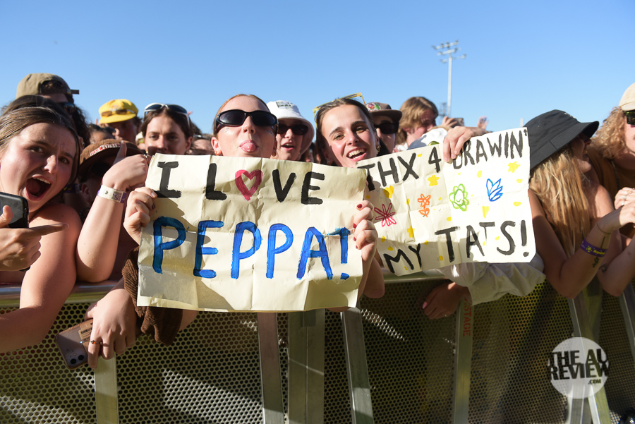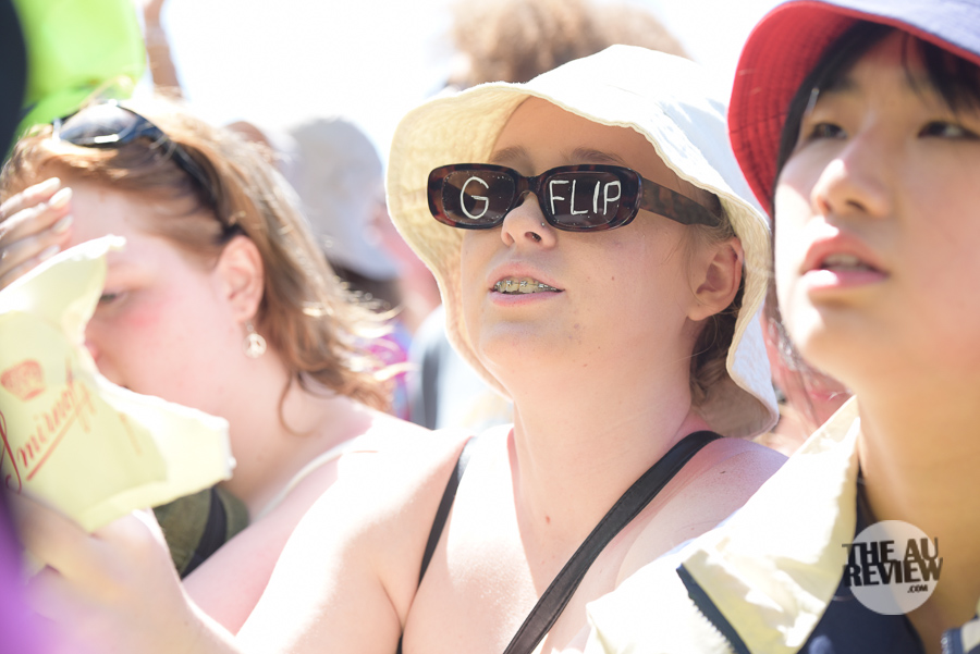 As the day progressed, the music kept coming, with upcoming band King Stingray a hit. UK rapper Pinkpantheress was almost overwhelmed at the size of the crowd. Despite the unfamiliar mid afternoon heat she punched out a solid set. Likewise, G Flip stepped out from behind her drum kit to belt out some smashing tunes.