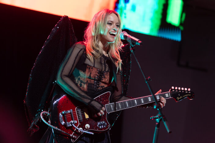 Leaving behind her previous albums and EPs, the set headed into the first tastes of Stop and Smell the Lightning, with the wonky and entrancing “Dynamite” making an appearance. An early highlight, “Dynamite” was the peak of the show until its closing moments – more on that in a bit. Followed up by “Talk”, the night took a slow and more introspective turn, with her Dad’s favourite song, “Stay My Mind (Arrival)” getting a run. Next up were “From the Hotel Pool I Draw a Line” and “Seven Storeys UP”, rounding out a hat trick of slower, sadder but just as great tracks.