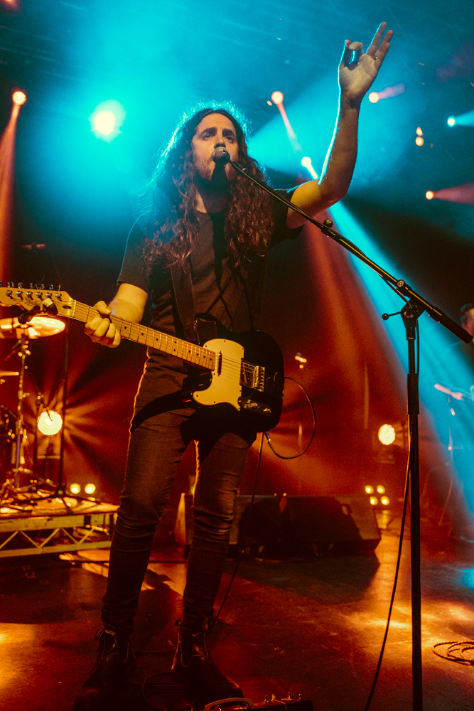 Ali Barter was a surprise guest during Holy Holy’s set, the partner of lead guitarist Oscar Dawson and a feature on their recent single “Faces” started as a backup singer toward the back of stage through their vivid rendition of the track before Tim suggested the two “swap places” to allow Ali some time at the front.