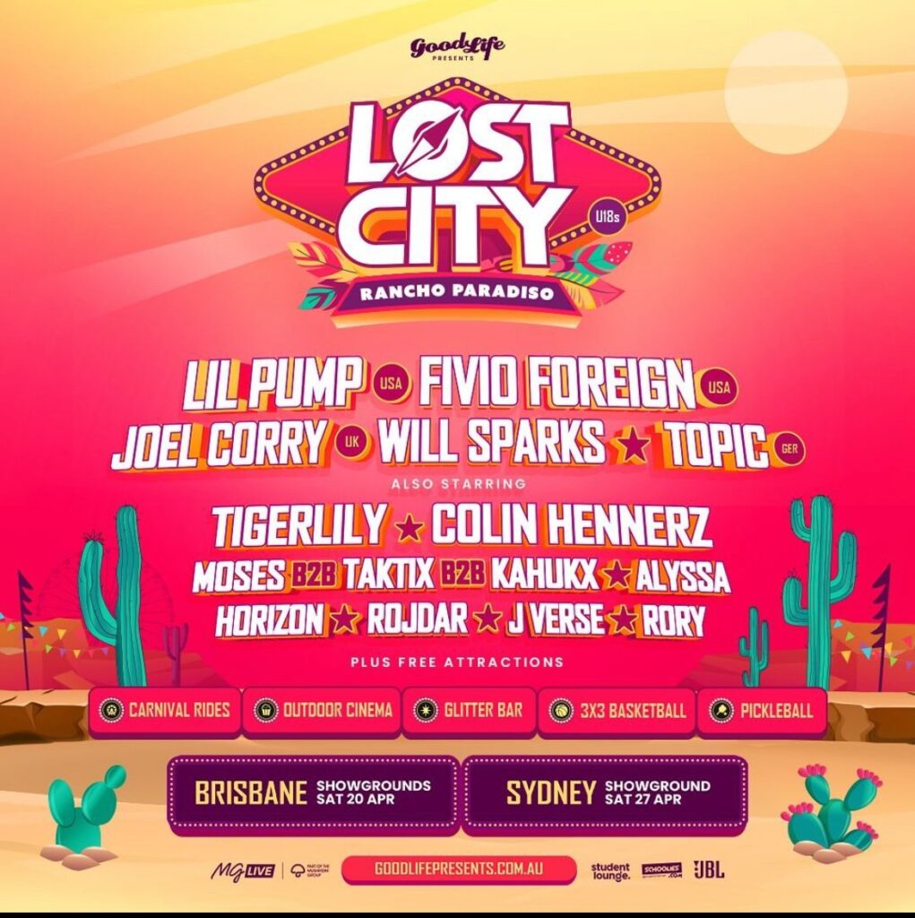 Presented by Good Life, Lost City is back in 2024! With a stellar lineup and attractions such as carnival rides, a glitter bar and a bean bag cinema- it’s a guaranteed good time.
