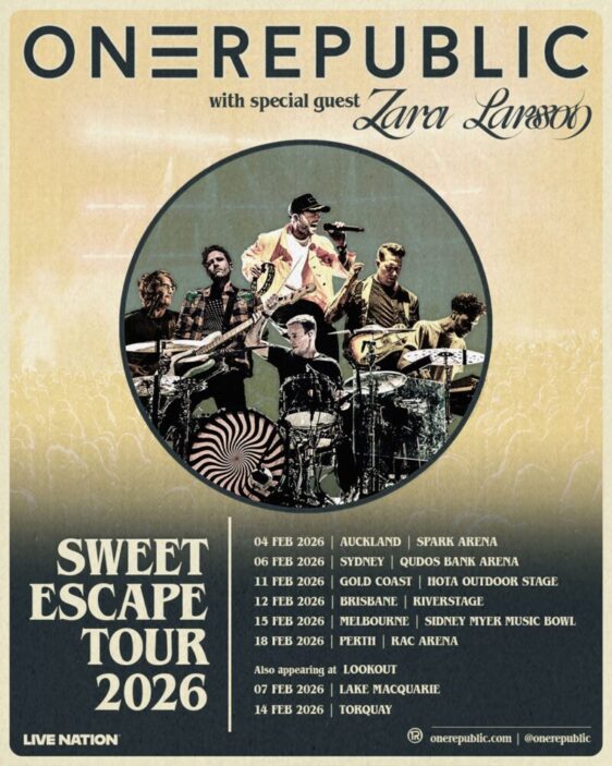 Gramy-nominated US band OneRepublic, headed up by acclaimed singer/songwriter and lead vocalist Ryan Tedder, have announced their highly anticipated return to Australia and New Zealand for The Sweet Escape Tour, set to kick off in Auckland, New Zealand, February 2026, before continuing across Australia.