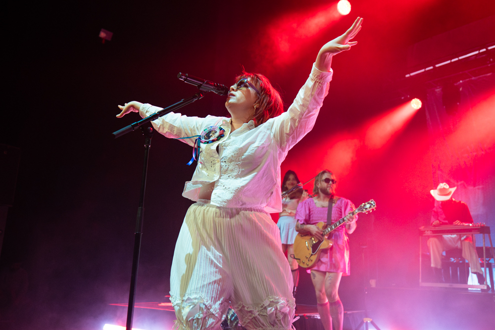 Irish singer-songwriter CMAT (real name Ciara Mary-Alice Thompson) commenced her set singing from the balcony at Sydney’s Enmore Theatre and then lit up the stage with an energetic performance of classic country heartbreak and indie pop, with a distinctly Irish sense of humour.