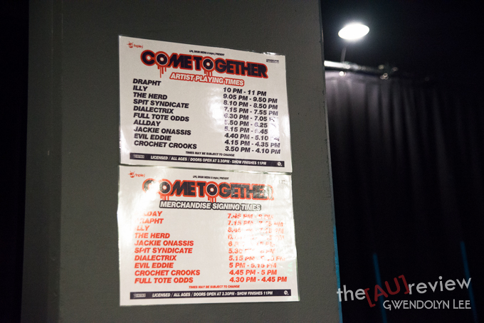 Come Together Festival 2013 saw Drapht headline The Big Top Luna Park on Saturday with a full line-up of Aussie hip-hop acts including Illy, The Herd, Spit Syndicate and plenty more. Gwendolyn Lee was there and brings us these photos from the pit.