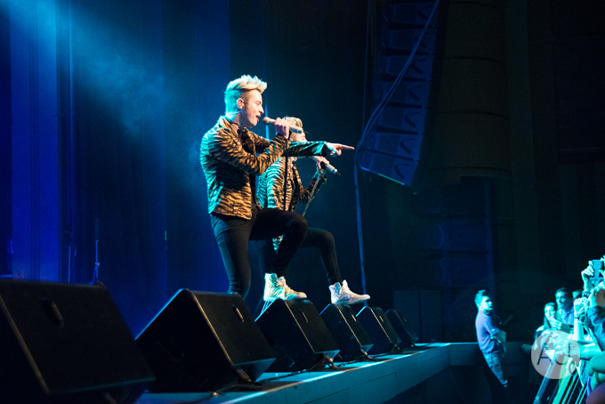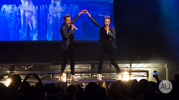 Identical Irish twins Jedward played a fantastic 2.5 hour long pop set at the Enmore Theatre on Sunday. Gwendolyn Lee was there and brings us these photos from the pit.