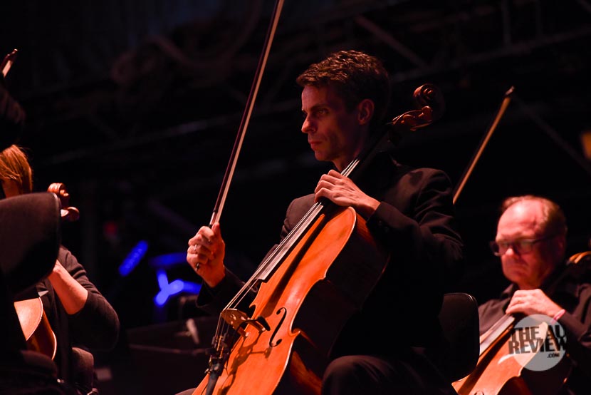 As the sun set over the park, Lior and Nigel Westlake, conducting the Adelaide Symphony Orchestra are next on stage for a haunting set of traditional arias and songs. Lior explains that these songs felt as though they were meant to be played outdoor like this.