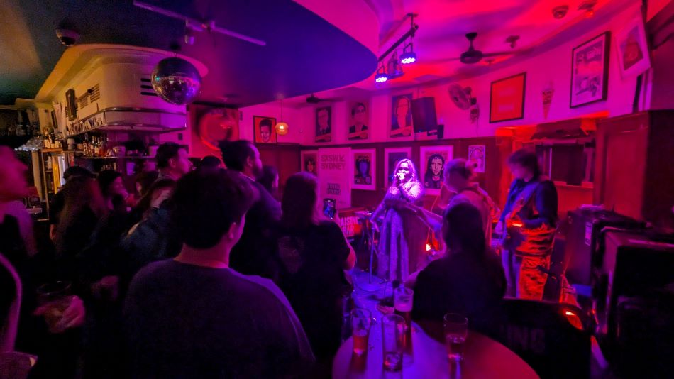 Two venues, not far from Darling Harbour, were established next to each other that, created a convenient place to be throughout the event. Mulan’s Restaurant and the resurrected Pleasures Playhouse hosted an array of acts. On that first night, Gut Health were a huge standout, with their droney, visceral post-punk at Mulan, which juxtaposed perfectly with the energetic, Tik Tok boosted pop star, Go-Jo next door. The old theatre was bouncing heartily to the youngster, who had a bevy of young fans near the front.