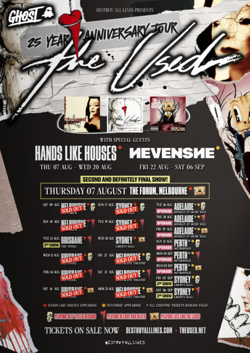 The Used continue their 25 Year Anniversary tour with dates in Perth and Sydney. Limited tickets remain – head to Destroy All Lines for more info HERE.