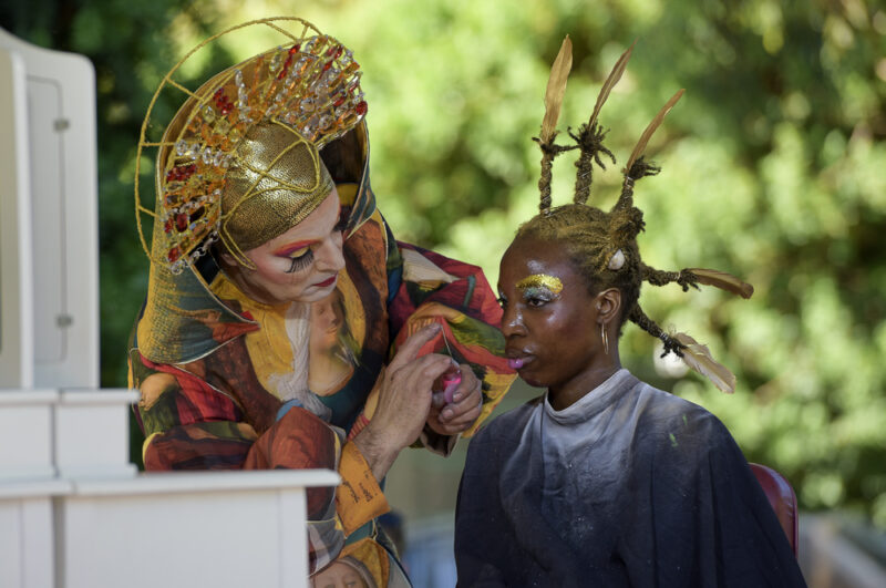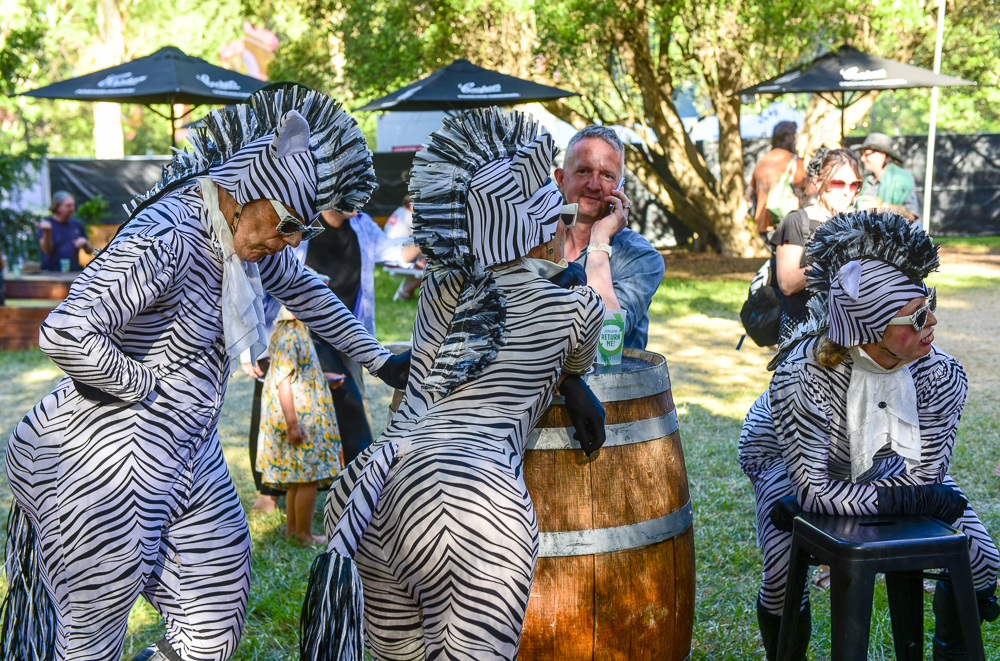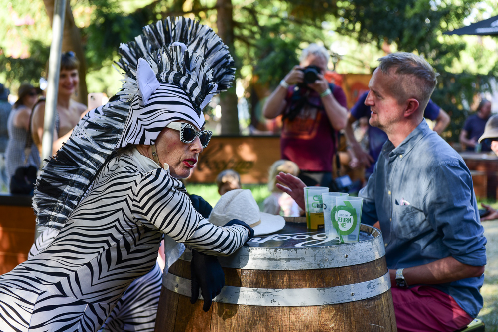 With such a large offering of events throughout Botanic Park, it is easy to get lost. Which is a good thing. Finding a bargain in the market stalls, watching friends gathering together in a shared space, stumbling across new musical discoveries; this is all part of the WOMAD experience. The creations from Osadia, the artists from Barcelona, were spotted all over the park. The zebras from Born in a Taxi were spotted having a cheeky visit to the Cooper’s Bar. The poetic performances of French acrobatics Cie Hors Surface, entitled “Le poids des Nuages” (The Weight of Clouds) explored the concepts of individualism, trust and ambition on a giant trampoline.