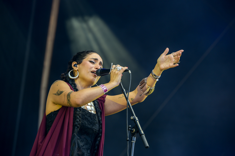 On the Foundation stage, French group Orange Blossom, headed by singer Maria Hassan blend Arab and Western music with an emotionally charged performance. It’s described as a sonic journey through Mali, Egypt and Cuba. They featured songs from their 2024 album, Spells from the Drunken Sirens. It was a beautiful afternoon made even more beautiful with their soulful sounds.