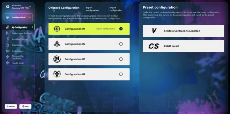The GravaStar app can be accessed directly online via the GravaStar website, and I do give the keyboard credit that it works flawlessly without the ned for any sort of introductory firmware updates or software installations.