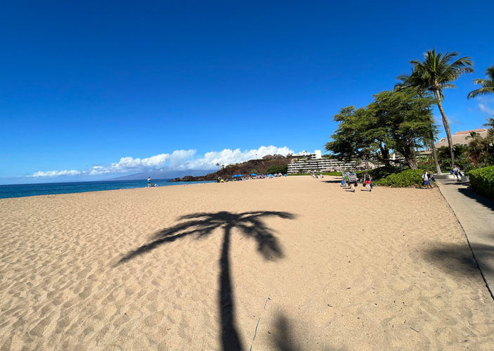 And in between music, you’ll hear the sound of the ocean’s waves crashing on Kā’anapali Beach, as the salt lingers in the air. With the scenery sinking into the darkness of night in the above photo, here’s how the incredible beach sits in the bright Hawaiian sunshine.