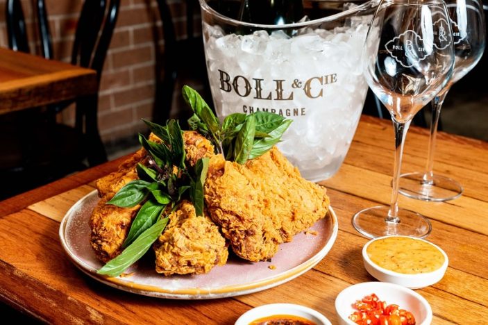 Those who really want to fancy it up can fork out $100 for 1KG of pho fried chicken with a bottle of Boll & Cie Blanc de Blanc, or just go for the standard one-piece and glass of Champers for $20.