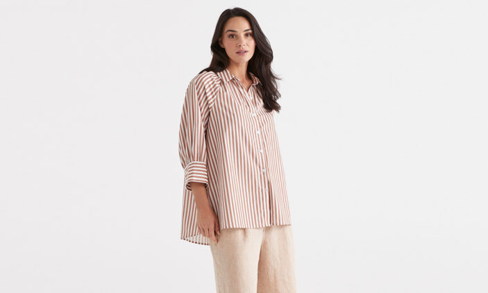 As a mum, I often find myself going through many outfit changes, especially after a warm day spent chasing the kids around. I crave comfort but also want to look my best and I honestly think I’ve found the perfect top that meets my needs. The Australian Cotton Raglan Top is truly the shirt of my dreams featuring a longline profile, raglan sleeve, blouson detailing and collar neckline. Again made from 100% Aussie Cotton this one is sure to keep you looking and feeling cool all summer long. Wear it out over your pants or give it a French tuck to create some shape and pair it with your favourite pair of high-waisted jeans or linen pants and you’ve got yourself a winner!