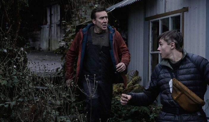 It’s all a bit vague from the off regarding what year Arcadian is taking place in and what exactly has happened. We hear words of the environment being ruined, and it’s evident that being indoors at night is key. This is a rule that strict father Paul (Cage) won’t budge on. Sharing meals and spending time together with his sons, Joseph (Jaeden Martell) and Thomas (Maxwell Jenkins), is important, but the nocturnal creatures that roam the land once the sun goes down speaks to his necessity on why they stay inside.