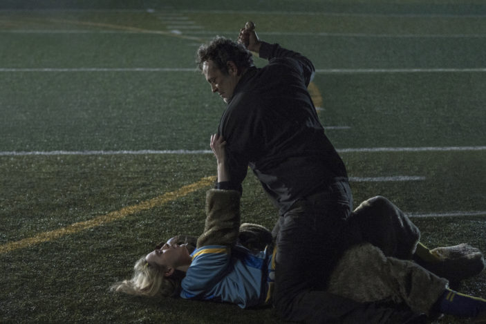 Coming off of such aggressive roles in features as Dragged Across Concrete and Brawl In Cell Block 99, the thought of Vince Vaughn flailing his arms and strutting with the poise of a flustered teenage girl is one that’s all the more appealing when you view it in its actuality. And it’s the hulking 6’5 framed star’s sheer dedication to the role that elevates Freaky‘s already enjoyable premise to something far more endearing than it has any right to be.