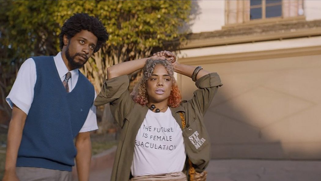 The film follows Cassius Green (Lakeith Stanfield), a smart, underemployed Oakland resident who just landed a job at a run-down call centre with creepy over-zealous managers and constant pressure to become a coveted “power caller”. At home, he has urgent need to pay rent to his uncle ( a barely-there Terry Crews) and find time to spend with his girlfriend and colleague, Detroit (played by the brilliant Tessa Thompson). He’s not able to just keep his head down and rise through the ranks though, immediately rushing into the deep-end, deflated with a nervousness that has people hanging up on him, left, right and centre, rendered brilliantly by Boots with a hyper-comical string of Green visually dropping into each callers home to interrupt their lives.